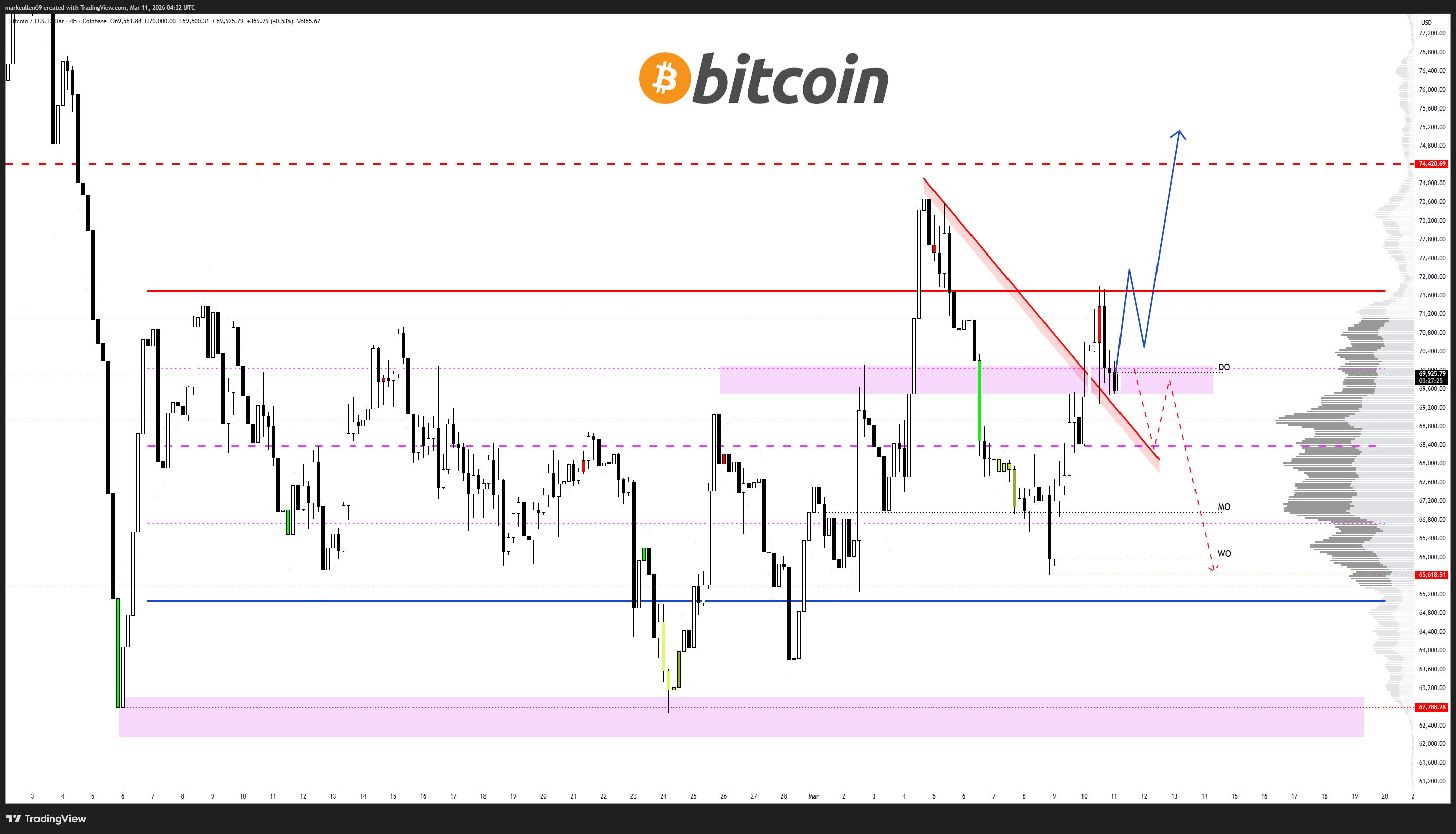 分析师Mark Cullen强调,7万美元是当前最重要的心理与技术关口。只有当价格重新站稳并守住该位,才具备进一步挑战更高目标的基础。若实现,月底前触及7.8万甚至8万的可能性提升。